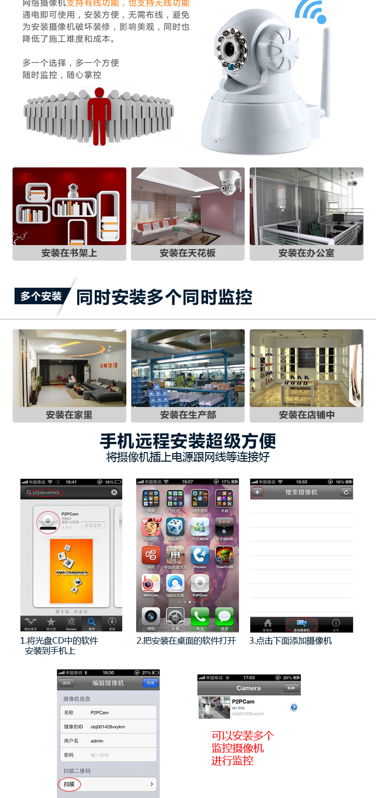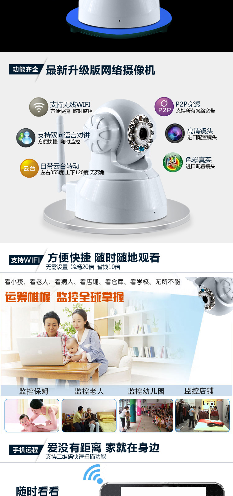 無線網(wǎng)絡(luò)攝像頭 高清監(jiān)控 免布線P2P網(wǎng)絡(luò)攝像機(jī) 無線WIFI手機(jī)遠(yuǎn)程
