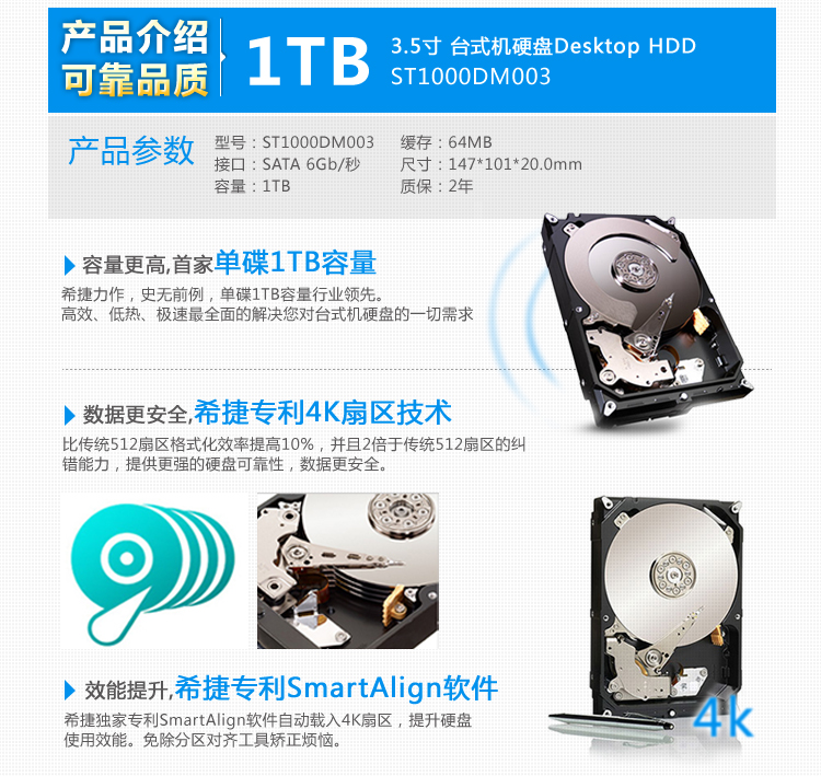 希捷Barracuda 1TB 7200轉(zhuǎn) 64MB 單碟(ST1000DM003)