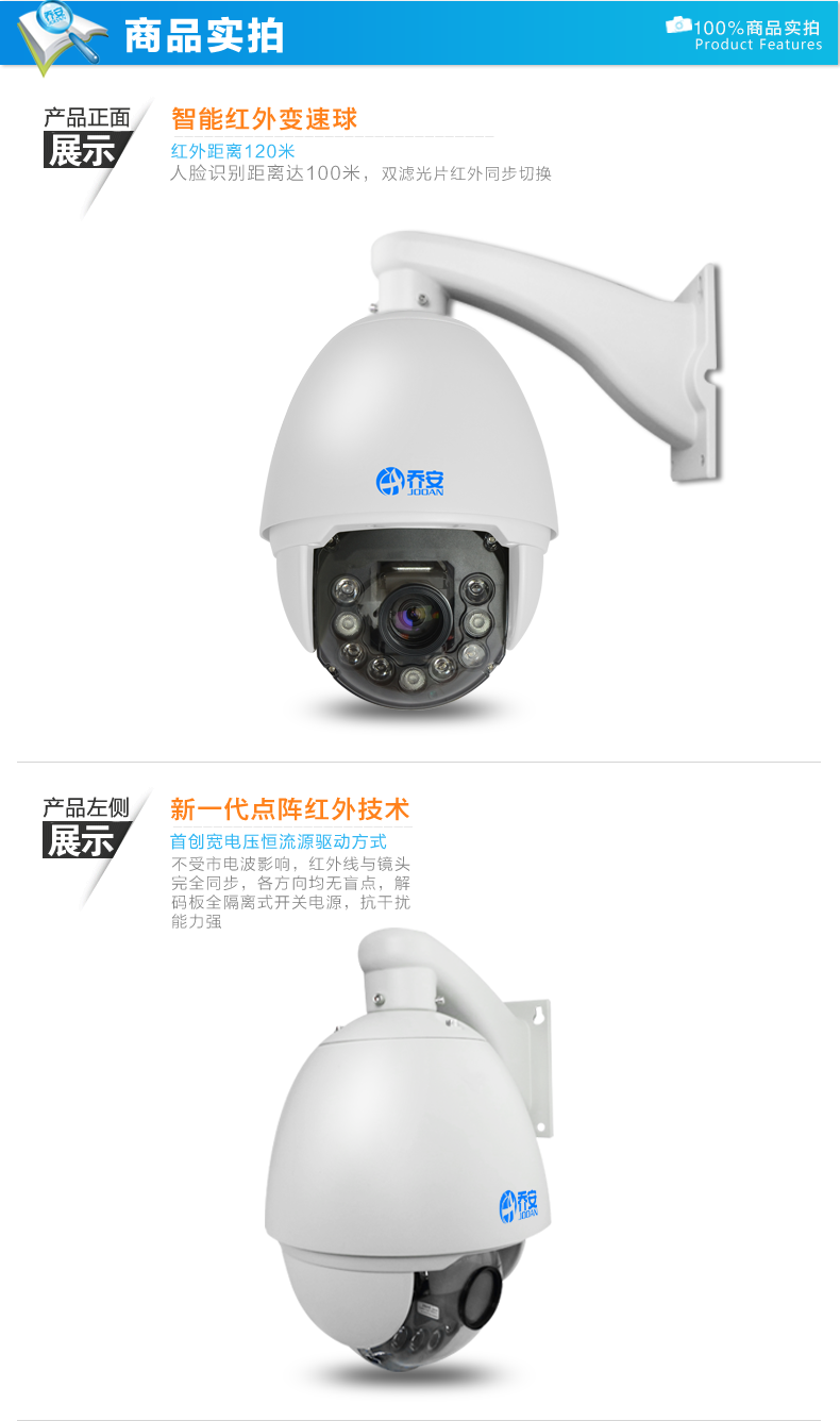 喬安智能紅外球機(jī) 100米陣列監(jiān)控 360度旋轉(zhuǎn)勻速云臺 含30倍變焦機(jī)芯 金牌品質(zhì)保證 保修2年 含機(jī)芯