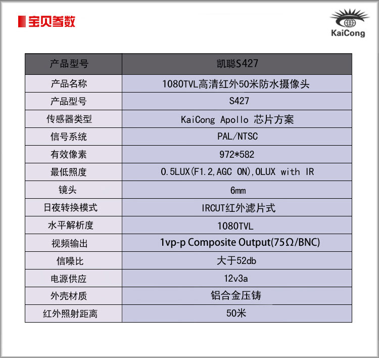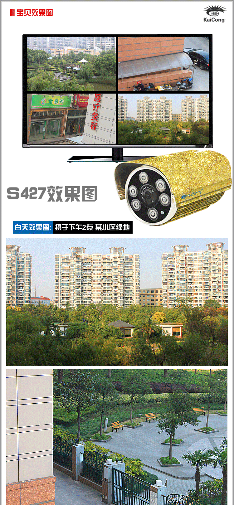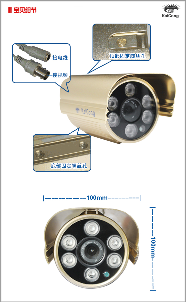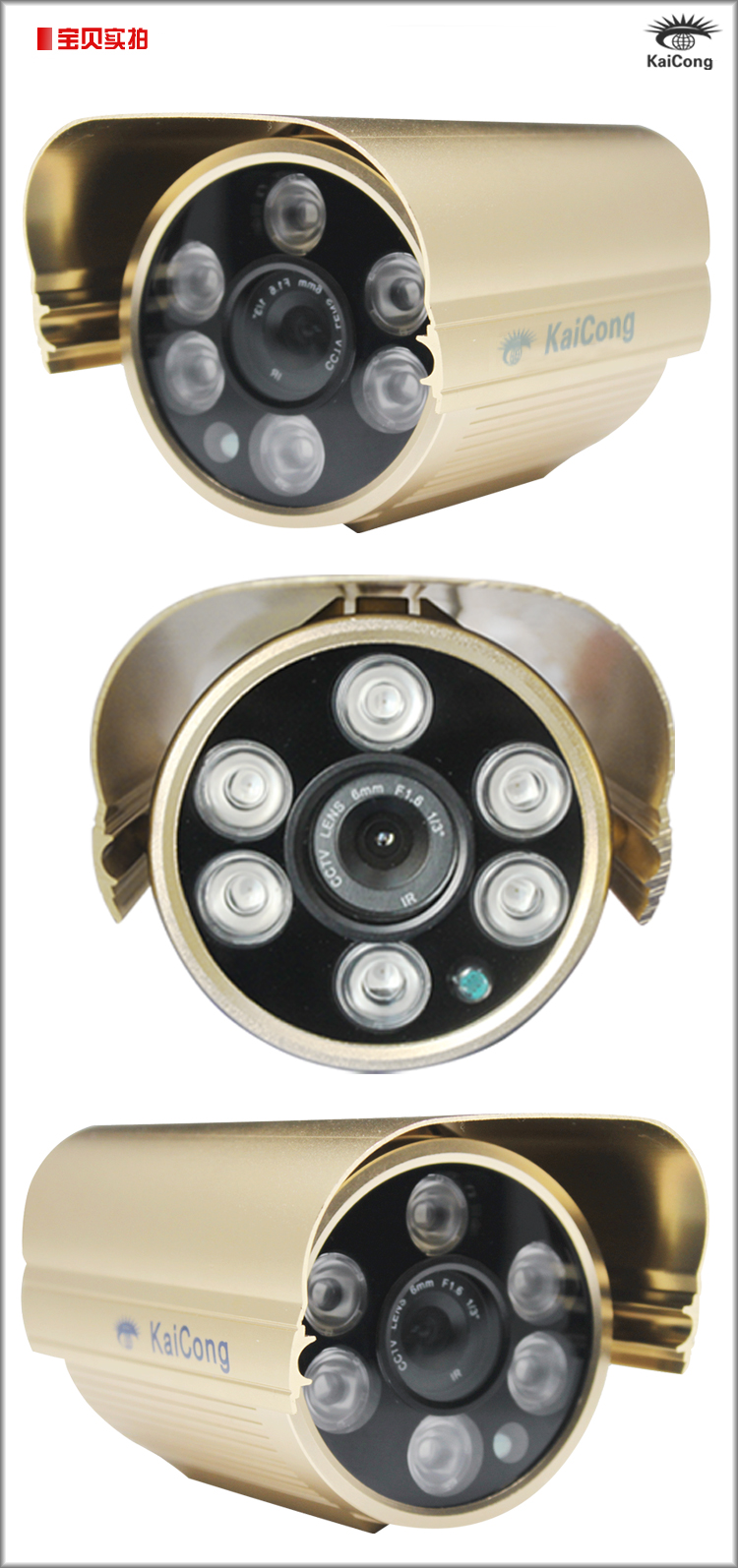凱聰1080線高清 監(jiān)控?cái)z像頭 攝像機(jī) 土豪金 六燈 Apollo 探頭 427 夜視距離50米 Apollo芯片 防水