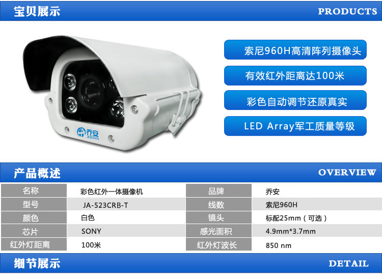 喬安100米陣列紅外護(hù)罩四燈陣列防水監(jiān)控?cái)z像機(jī)/頭側(cè)翻960H高清 紅外陣列攝像機(jī) 防水 960H高清