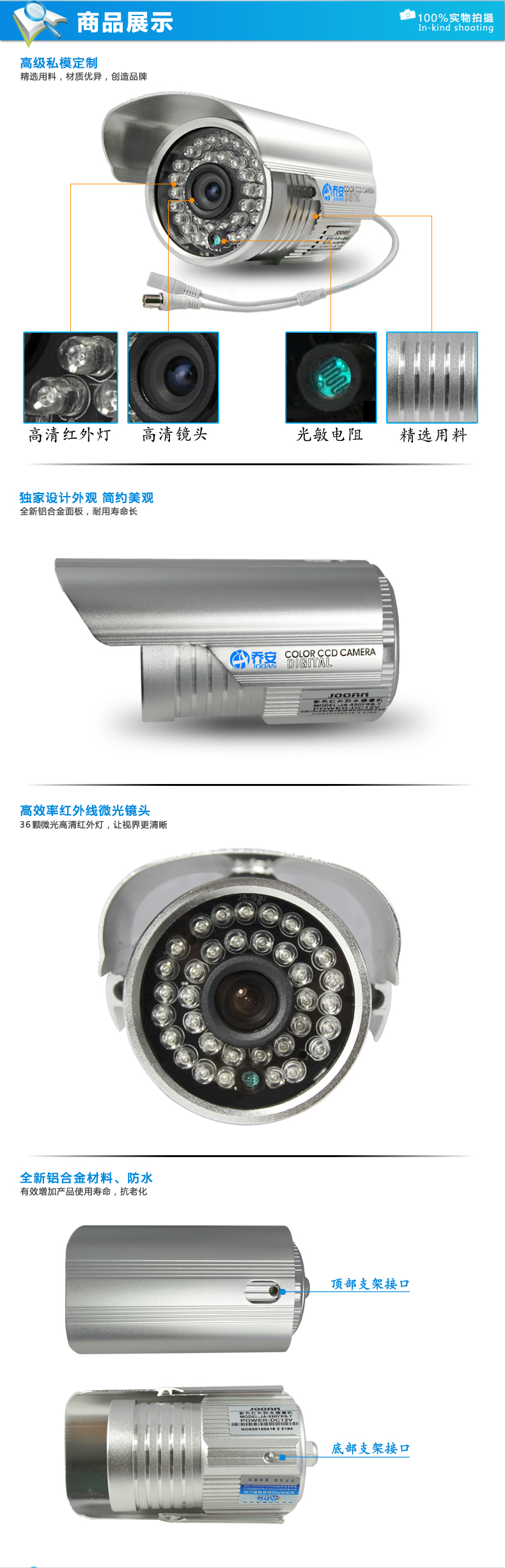 喬安36燈雙玻璃/高清/紅外夜視/監(jiān)控?cái)z像頭/彩色/防水槍式監(jiān)控器 36燈雙玻璃防水槍機(jī) 性價(jià)比之王